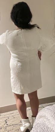 I wore this dress for my winter bachelorette party and it was perfect! Fun sequins and very comfortable stretchy material. Loved the long sleeves and the cinched look at the waist was very flattering. 10/10!