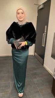 I work this dress to Christmas Eve mass and family dinner. Beautiful fabric, great fit, perfect Christmas dress and so many compliments.