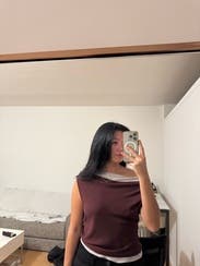 I read the reviews before renting this top. It is definitely not what I expected. It is double layered, the layers are stitched together. The underneath layer rises up does not stay put and does not lay right. I was constantly adjusting this top It just was a weird fit for me and pulled when I moved my arms in all the wrong places. As long as I stayed still with my arms at my side it was OK. This is just probably not the right style for me.