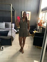 Loved this romper. However once you wear it once it really doesn’t keep shape so I wasn’t able to use it more than the first time.