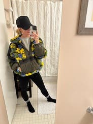 This jacket is awesome!! Oversized and cozy, but fun and with lots of pockets.