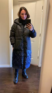 Love this puffer! Caveat: if you live in a colder area, the coat isn’t all that warm. I live in Minnesota and it served more as a thin outer layer. Love the length and style though! Great for layering underneath.