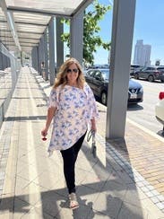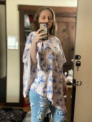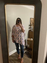 Wore on a date with my husband on a warm spring day. It blows in the breeze, looks great and feels comfortable. Love this top!