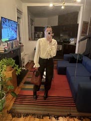 Loved the drama of this blouse for a day full of meetings 🏴☠️ fit pretty TTS but was something I’d rather rent than own!