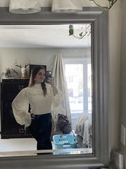 I liked this top so much that I wore it to work twice. It's very stylish. The laces on the sleeves and the back got in the way a little bit so I had to be very cautious while eating.