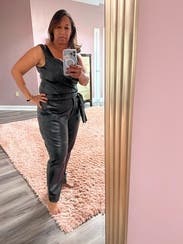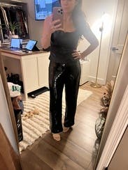 I wore this with pleather pants, but they would have looked great with a pair of palazzo pants as well. I will rent this again!