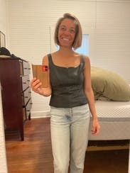 This top cute. The fit was a little snug, which was ok, but the straps were too big for my frame. I didn’t wear it because they kept slipping off my shoulders.