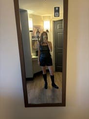 It ran a bit too short for my tastes but I liked the look layered over a top. I do recommend sizing up if in between sizes. Some of the reviews suggested that straps might be too long but I didn’t find that to be the case