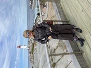 I wore this multiple days on my trip in Scotland and just realized I didn't get any full size images in it. It was warm and water resistant. The buttons were not on super well so I was worried about using them in case they fell off. The material was smooth so sometimes it was hard to keep it closed when tied without the buttons because it would slide but that was a minor issue. I recently lost weight so I'm in between sizes and I loved how I could tie this to make it work and that was also helpful when layering my outfits. Did not feel bulky. So many options. One of my overall favorite rentals.