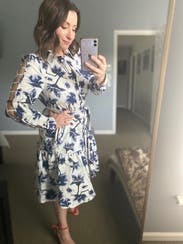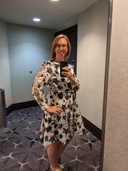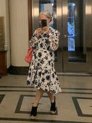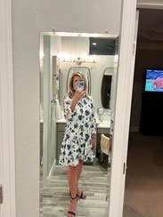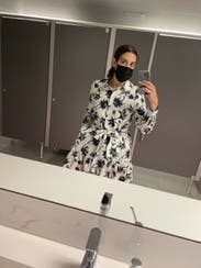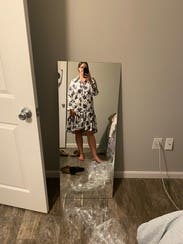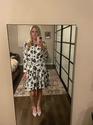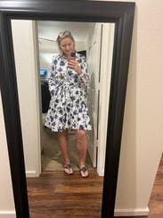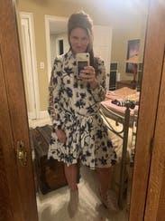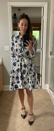 I finally took my first RTR bathroom selfie ;) I loved this dress for work - I didnt capture the BEST part of this dress which is the sleeve detail. Got so many compliments on this dress. Perfect for a work event. I paired it with white sneakers and it was super comfortable.