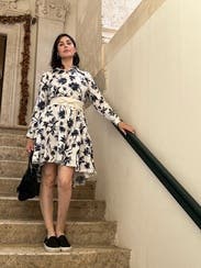 I really like this designer and hope RTR provides more fashion from them! The pattern is fun and I found it flattering. I deducted a star because it wrinkles so easily, it needed to be steamed every time I wore it. Otherwise, I recommend trying this for a cute spring dress.