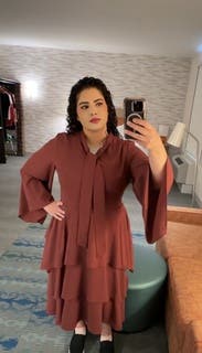 This was a great work dress. So many ruffles. Different and has pockets. Wore it once to the office.