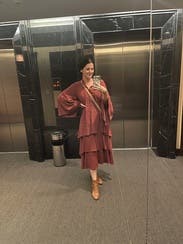 I love this dress! So comfortable and perfect for a fall event. I received so many compliments on it.