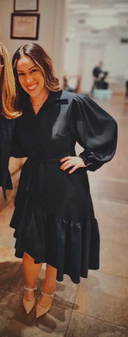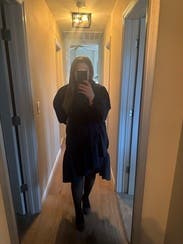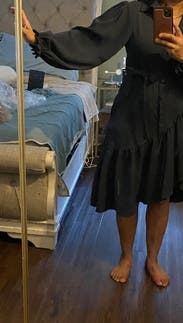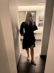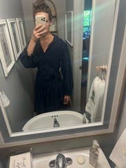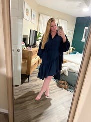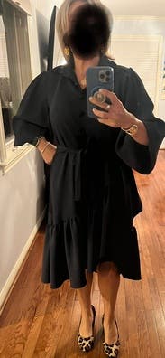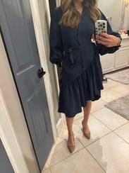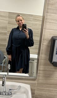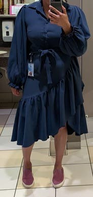Liked the asymmetrical look to elevate the simplicity of the dress. Sleeves were a little frilly to me. Very comfortable for work