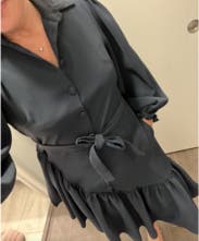 Loved the tie waist, buttons, and flows sleeves. It's an appropriate length for work and I received a lot of compliments!