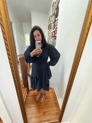 Loveeeee this dress and the details are so cute and flattering. The length is great for the office and it’s super comfortable while looking sharp and professional. Can dress up or down. Could easily size down, if your normal size isn’t available.