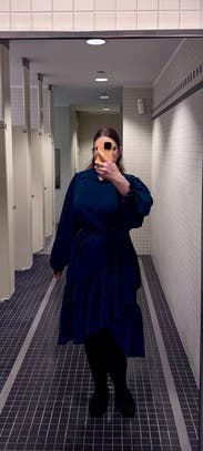 Loved this dress for work. Has a great weight to it, drapes nicely, doesn’t hold wrinkles. Has pockets! Was a hair tight across my love handles/hips but as long as I kept the pockets tucked in, it was fine! Got lots of compliments.
