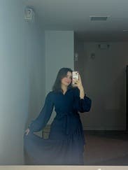 Love the lines, color, & material of the dress. The tie really cinches the waist creating a beautiful silhouette. Would definitely rent again.
