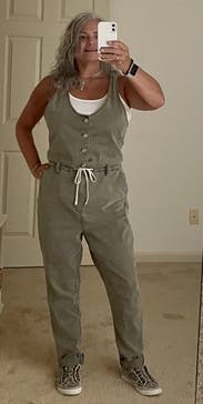 LOVED this jumpsuit! I got so many compliments. It does run a bit big so size down. I wore it multiple times and was even able to dress it up and wear to work on casual Friday.