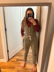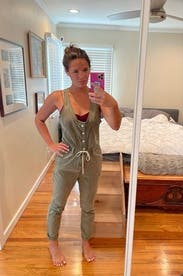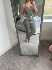 I loved this jumpsuit. It was super comfy and great for WFH and walking my dogs. The top was baggy on me but looked cute with a bralette or T shirt under it.