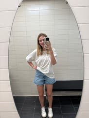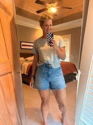 I’ve loved having these shorts in my closet this summer. They do run small so it took two tries and sizing up to get the right size. They are high waisted and easy to style and the length is perfect!