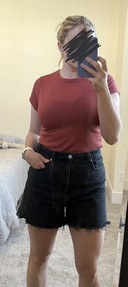 Love how well these shorts fit, they’re short but cover my behind enough, and are super high waisted which is my preferred style. Pairs well with a crop top. If they weren’t so expensive, I definitely would’ve kept them!
