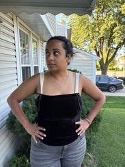 Black shirt staple. It's velvet so I dressed it up with jeans and heels. Very pretty and comfortable. Recommend.