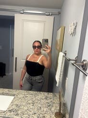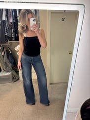 Perfect top for a night out. Wore multiple times with jeans. Material has some give and is very comfy but also supportive in chest area.