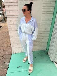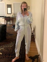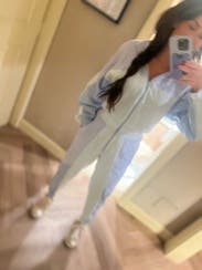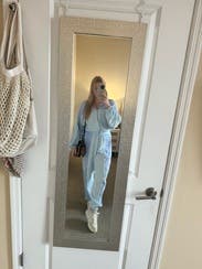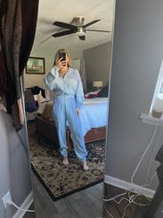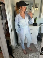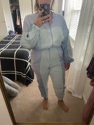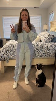 I was living my best life in this jumpsuit tracksuit. The material is so lightweight and is like wearing a cloud. Obsessed. The colors are incredible in person and I think shine through in pictures. My only complaint is that the waist band is VERY tight. Borderline couldn’t zip it up. I’d be curious to try a size up, but then I wonder if it’s be too baggy elsewhere. Would rent again in a heartbeat.