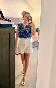 Loved this shirt so much, I almost bought it. Super lightweight for hot, humid summer weather and paired well with navy linen shorts, jeans, white shorts or white linen crops. Dressed up or down!