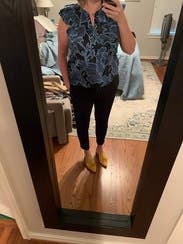 This shirt really didn't work. The material wasn't very soft and the ruffles and collar didn't lay quite right. It also hit shorter on my hips than I would have liked, but I have a long torso.