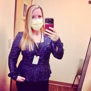 The shirt is definitely sparkly, not for work. It fit well. The small button at the bust wouldn’t stay closed but some fashion tape did the trick