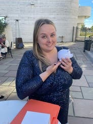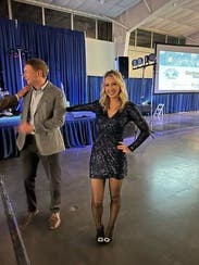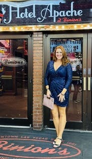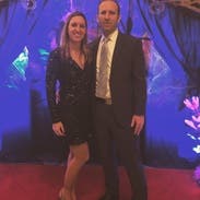 This dress was amazing! Beautiful color, comfortable, and not itchy! The arms are nice because they are a lighter fabric so you don’t feel trapped by heavy sequins. I will say, it is very low cut. Used a few safety pins to make it modest (but even with two pins there was definitely some cleavage). But I could wear a bra!!! My husband was definitely a fan of the dress and I received compliments from everyone—definitely a way to stand out. I unfortunately didn’t take pictures where you can see the full dress. So a picture of me with the piggybank prize I won will have to do