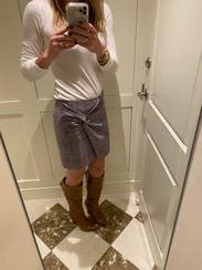 I rented this Parker skirt with only 1 review. I'm glad I went up a size because there is no stretch to it. Received compliments all day long! In love with this skirt! 💜