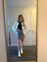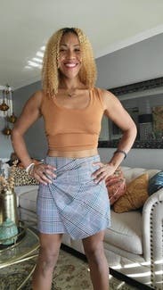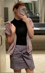 I love this skirt!!! I originally rented it to wear in London on spring break but the trip was canceled due to coronavirus restrictions. I decided to wear this cute outfit around my house while in isolation to have a little fun. It was so cute and flattering. The 10 was a great fit and not too tight around my booty. Would definitely have loved to wear this around town for a day. Hopefully I'll have another reason to rent again in the future.
