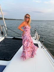Wore to a wedding at a villa and received so many compliments! It runs very long -- I am 5'5" and had to purchase 4.5" heels to wear this without tripping on it. The 4 was not available so i ordered the 6 and it was roomy in the waist/torso area. With adjustable straps I think you can make a bigger size work.
