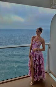I love this dress! It’s just screams fun to me. I’m petite, so it was just a little too long. I had to hold it up it up as I walked. Maybe if I wore 4 inch heels it would have been perfect. It’s pretty well structured up top, so even if I forgot to bring shapewear to the cruise, and had to wear regular underclothes, it held in what I wanted to be held. No bra needed. One of my favorite rentals.