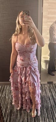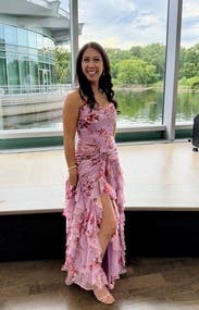 This dress has been one of my favorite dress rentals so far! I wasn't very sure at the beginning because I don't usually wear prints for weddings but I'm glad I did! It's very comfortable to move and dance in. Got a lot of compliments! Perfect for a spring/summer wedding.