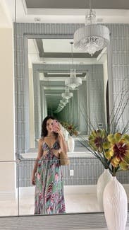 This was very cute but not as expected. Be warned: it’s not just a maxi. There is a full-blown swimsuit or body suit inside that needs to be fastened because the skirt is totally sheer. The bikini top is cute but tight so works well for smaller chests. The top attaches to bottom with a lot of material that poofs.