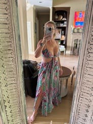 This was such a perfect dress for a tropical vacation. Only drawback was the snap closure bottoms under it were a little uncomfortable after a few hours, kinda of wish they just put a short slip under this.