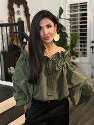 Iconic volume top. The perfect go-to top if you love a dramatic sleeve. It is cropped.