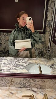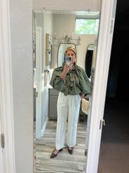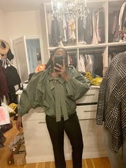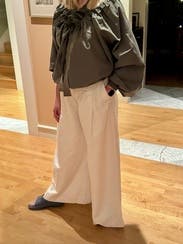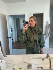 Felt so chic in this top. I’ve been eyeing it for a while and was worried it would be too much fabric for my frame. But you can cinch at the neck to adjust. LOVED this top. Got so many compliments. Definitely size down