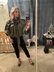 Absolutely loved this top! So many compliments. I wore it with jeans for dinner, dress pants for a work event, and black pants for a holiday party. Chic but versatile.