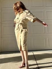 If you tie the wrap skirt at the waist to achieve the slouched shirt part as pictured, the back slit shows your rear end. I'm not sure if this has been shrunken or what, but there was no possible way to make this work. I had several of my friends try. All had the same issue