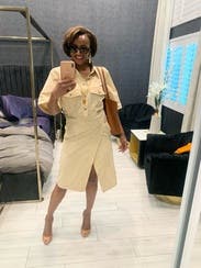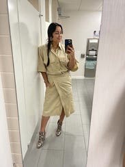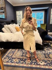 I liked how the shape was a little different than the normal shirt dress! Wear shorts or a slip under this