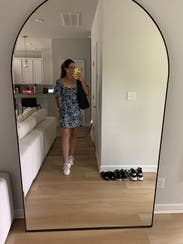 I love this dress. I rented it for a welcome party to a wedding weekend but ended up wearing it a few more times after. It is a little shorter but not too short that it’s uncomfortable.