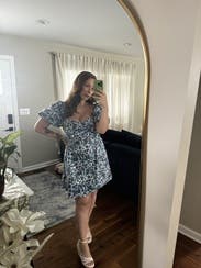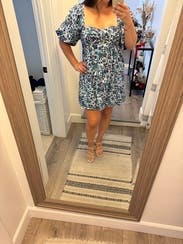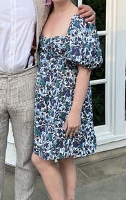 This dress is just too sweet. Great print, neckline, fabrication. Comfortable and not too short. My only regret is not renting it sooner!