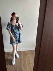 Loved this dress, so comfy and can get away with no bra which is a major plus in my book. Great color and perfect for summer. Shoulders didn’t stay up great but pretty standard for a dress with this type of sleeve. Prob could’ve sized down but it worked because the 10 was unavailable.