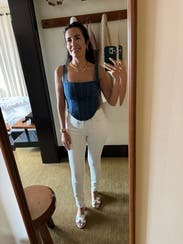 This top was cute! It was a little too big so it wasn't too corseted, but I think a size down would have been too small.