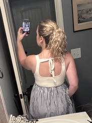 Super cute and kind of wish I kept it for the 4th of July, but the top was a bit tight and my bra kept poking out. Was good for a party despite the peekaboo bra. Loved the tie back